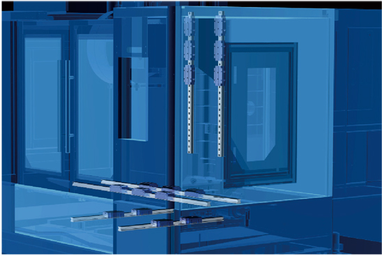 X 轴和 Z 轴采用标准6个滑块设计,刚性好,精度高,重切削能力强;